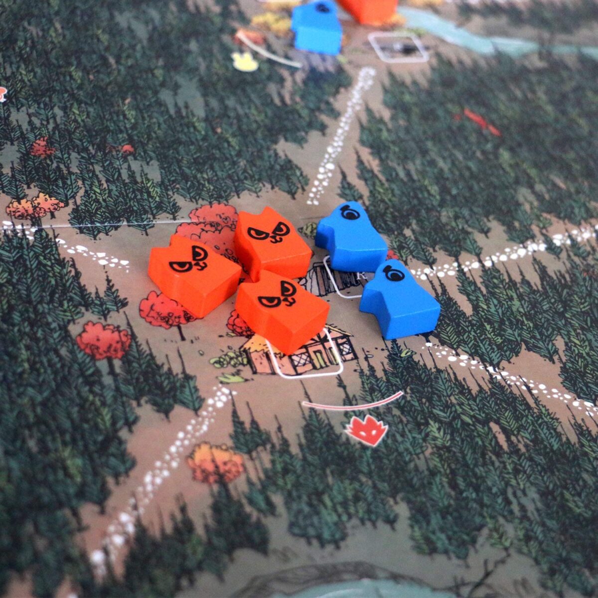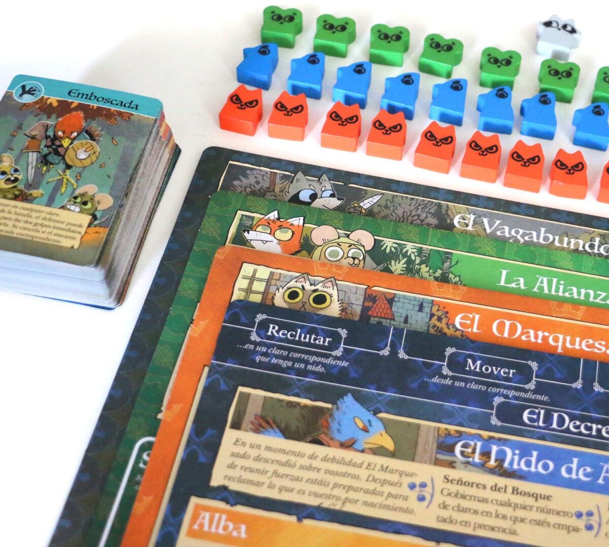 Asimetría Radical: Este es el punto fuerte. El Marquesado de los Gatos juega con construcción y control territorial; la Dinastía de los Pájaros juega con programación de acciones que puede colapsar; la Alianza del Bosque juega con guerrilla y rebelión; y el Vagabundo juega como un personaje RPG que hace misiones y se alía con otros.