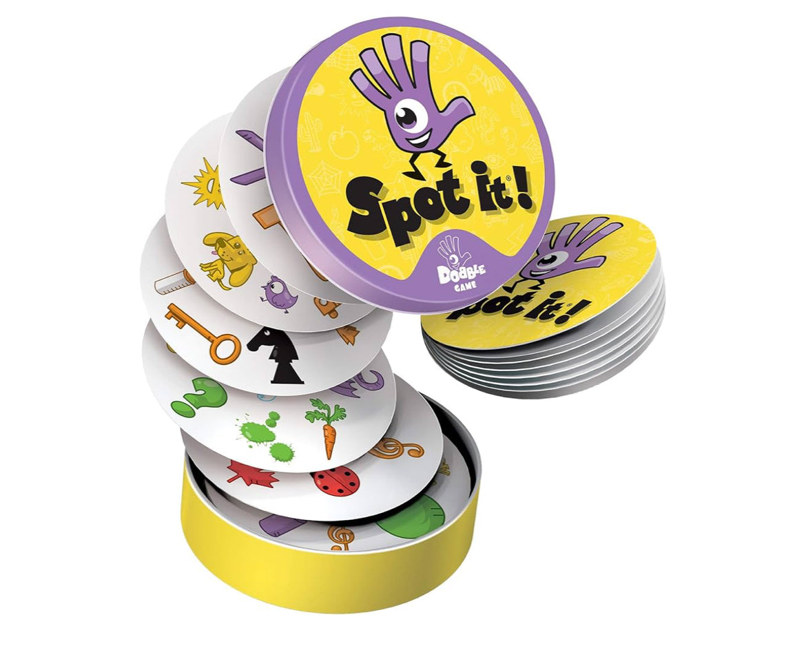 Spot It!, también conocido como Dobble en algunos lugares, es un emocionante y rápido juego de cartas que pone a prueba tus habilidades de observación y reflejos. Es un juego accesible para todas las edades y puede disfrutarse en familia o entre amigos, ya que las reglas son simples pero el desafío es intenso.